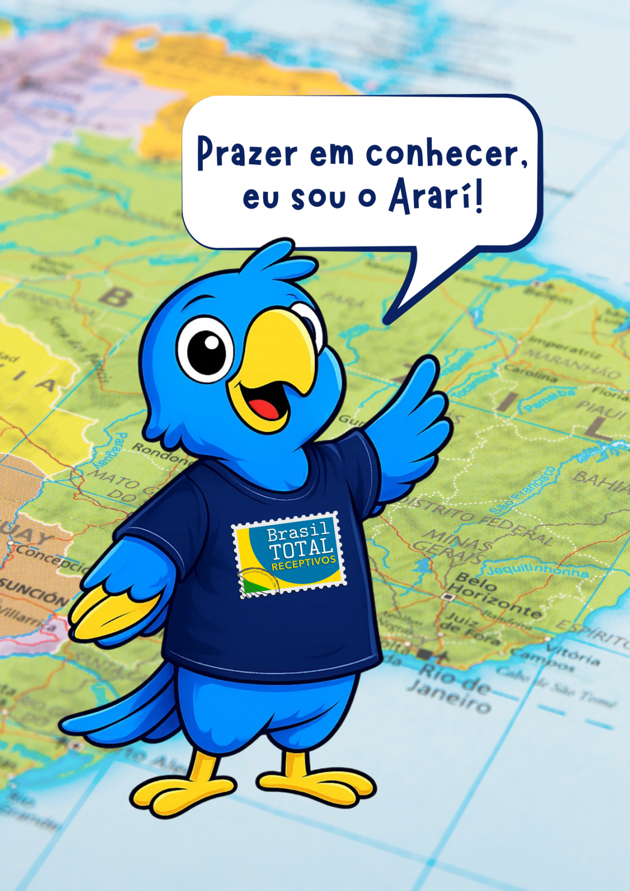 O Ararí é o anfitrião oficial da Brasil Total. Ele não substitui nossa marca institucional, mas a acompanha, reforça e humaniza.