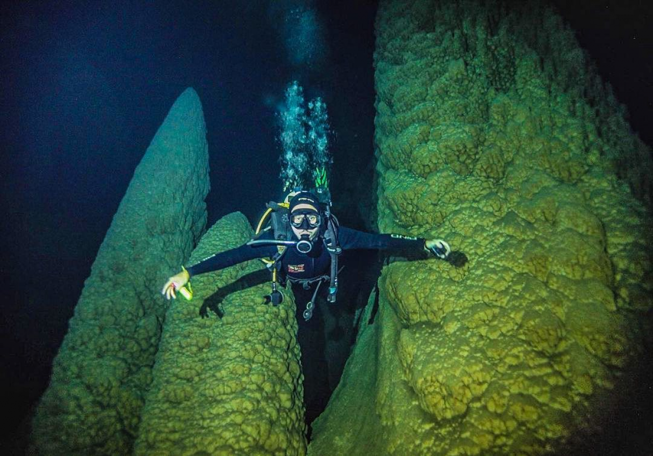 O passeio começa com um rapel de 72 metros que é feito por uma fenda na rocha levando a caverna que abriga um lago do tamanho de um campo de futebol com 80 metros de profundidade.