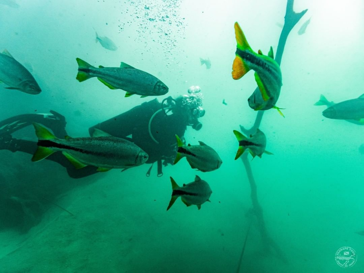Quem não tem curso também pode mergulhar! Esse passeio oferece a opção de "Mergulho de Batismo" onde o percurso é acompanhado por instrutores qualificados internacionalmente a uma profundidade máxima de 7m.
