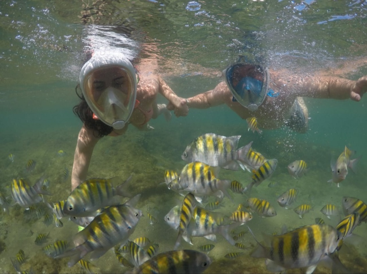 Localizadas entre os recifes de corais, com suas águas transparentes, essas piscinas formam verdadeiros aquários naturais com uma enorme variedade de peixes coloridos, corais e Crustáceos, onde realizamos o mergulho livre com a Máscara Easybreath, permitindo assim a respiração natural debaixo da água, tanto pelo nariz, quanto pela boca. Com tecnologia inovadora, a máscara proporciona um campo de visão desobstruído de 180°, sem embaçar a lente por conta do sistema com duplo fluxo de ar acima, além de impedir a entrada de água no Snorkel devido ao mecanismo que fecha o topo do Snorkel quando submersa.